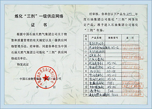 江蘇省著名商標(biāo)銅牌 中國石油煉化“三劑”一級供應(yīng)網(wǎng)絡(luò)證書