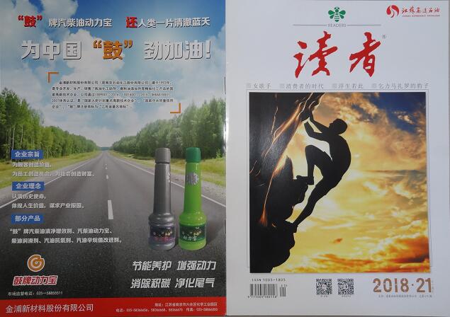 “鼓”牌汽柴油清凈劑、動力寶產(chǎn)品,已投入市場多年,得到廣大消費者的認可。金浦新材料近期與讀者《雜志》展開合作宣傳,進一步擴大產(chǎn)品知名度、美譽度。(銷售事業(yè)部  報道)